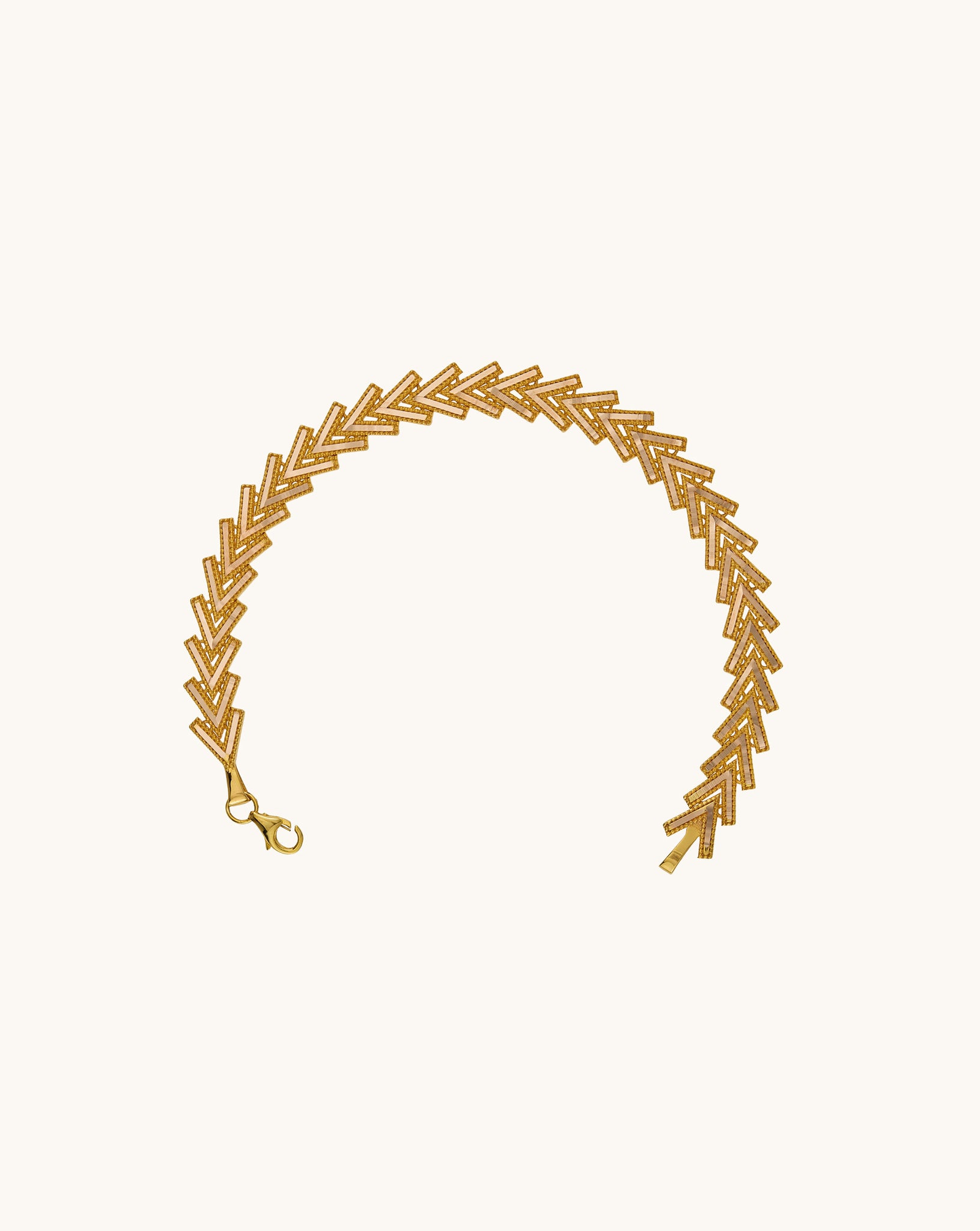 Geometrik V formlu pırıltılı dokuları modern bir dizilimle buluşturan bu tasarım, zarif yapısı ve şık duruşuyla günün her anında stilinize göz alıcı bir parlaklık katar.