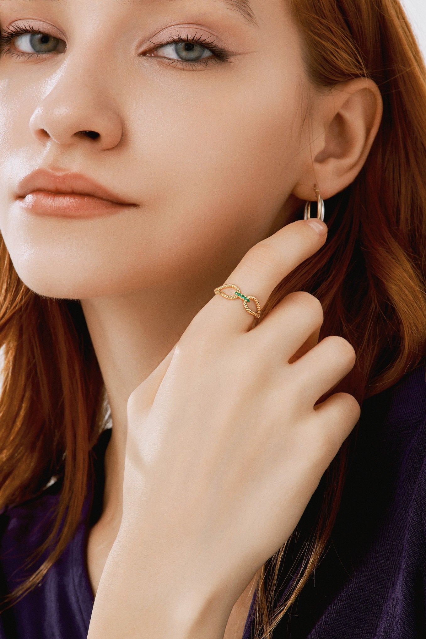 Burgu Formlu Yeşil Taşlı Yüzük