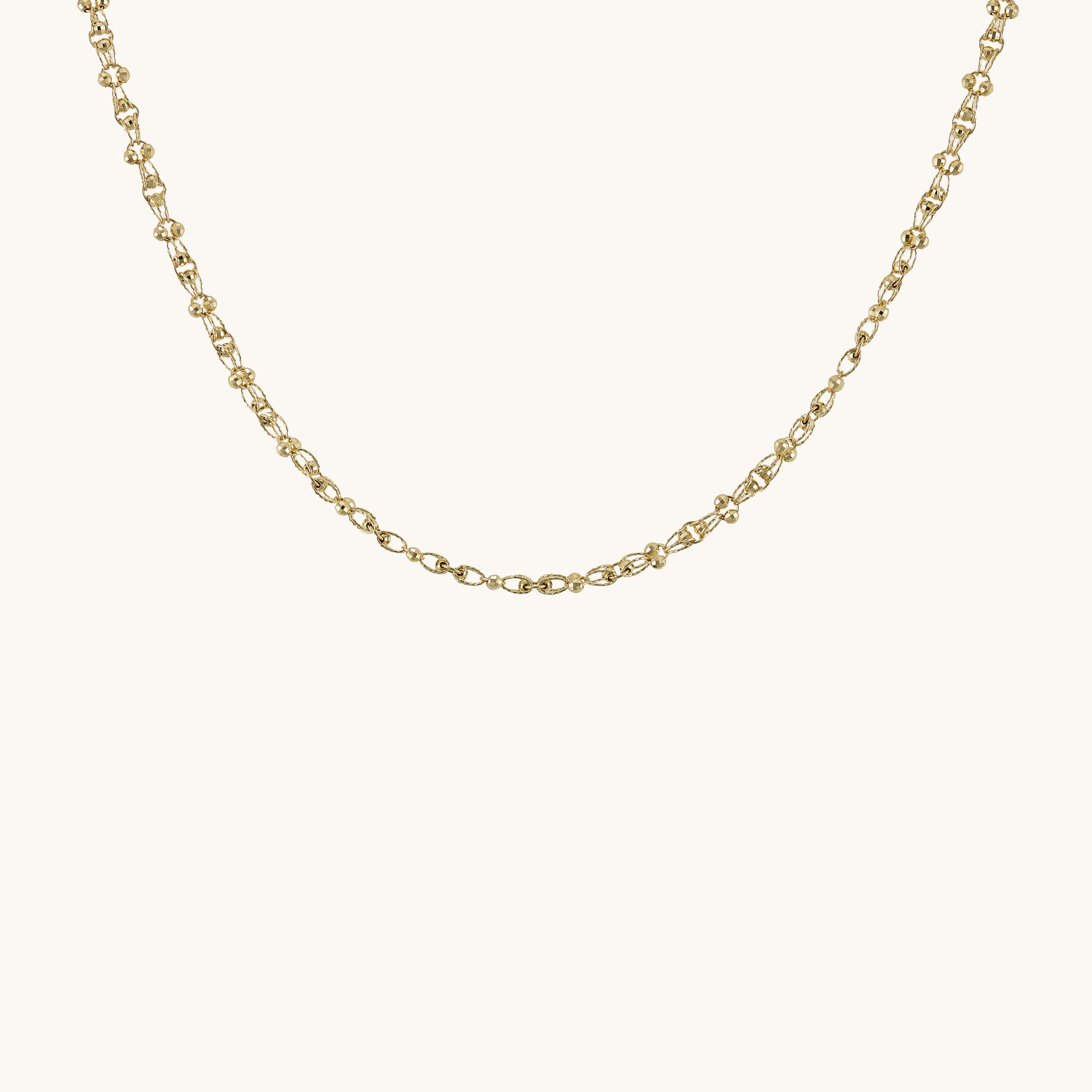 İnce halka zincirin zarafetini minik kürelerin doğal parıltısıyla buluşturan bu kolye, yalın bir şıklığı göz alıcı detaylarla boynunuza taşıyor.