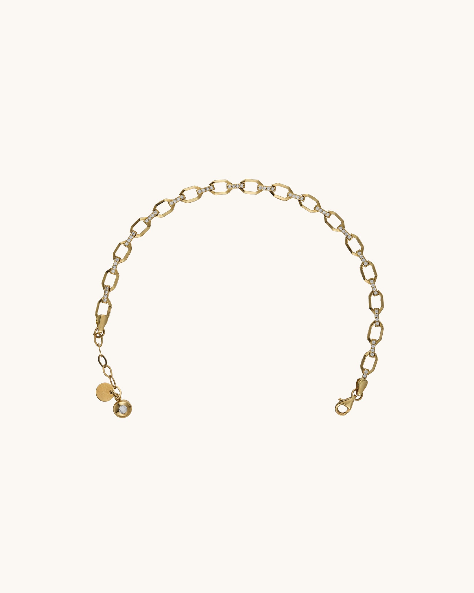 Geometrik bakla formlarını göz alıcı taş ışıltılarıyla buluşturan bu tasarım, modern çizgisi ve zarif duruşuyla stilinize her an eşlik edecek seçkin bir parçadır.