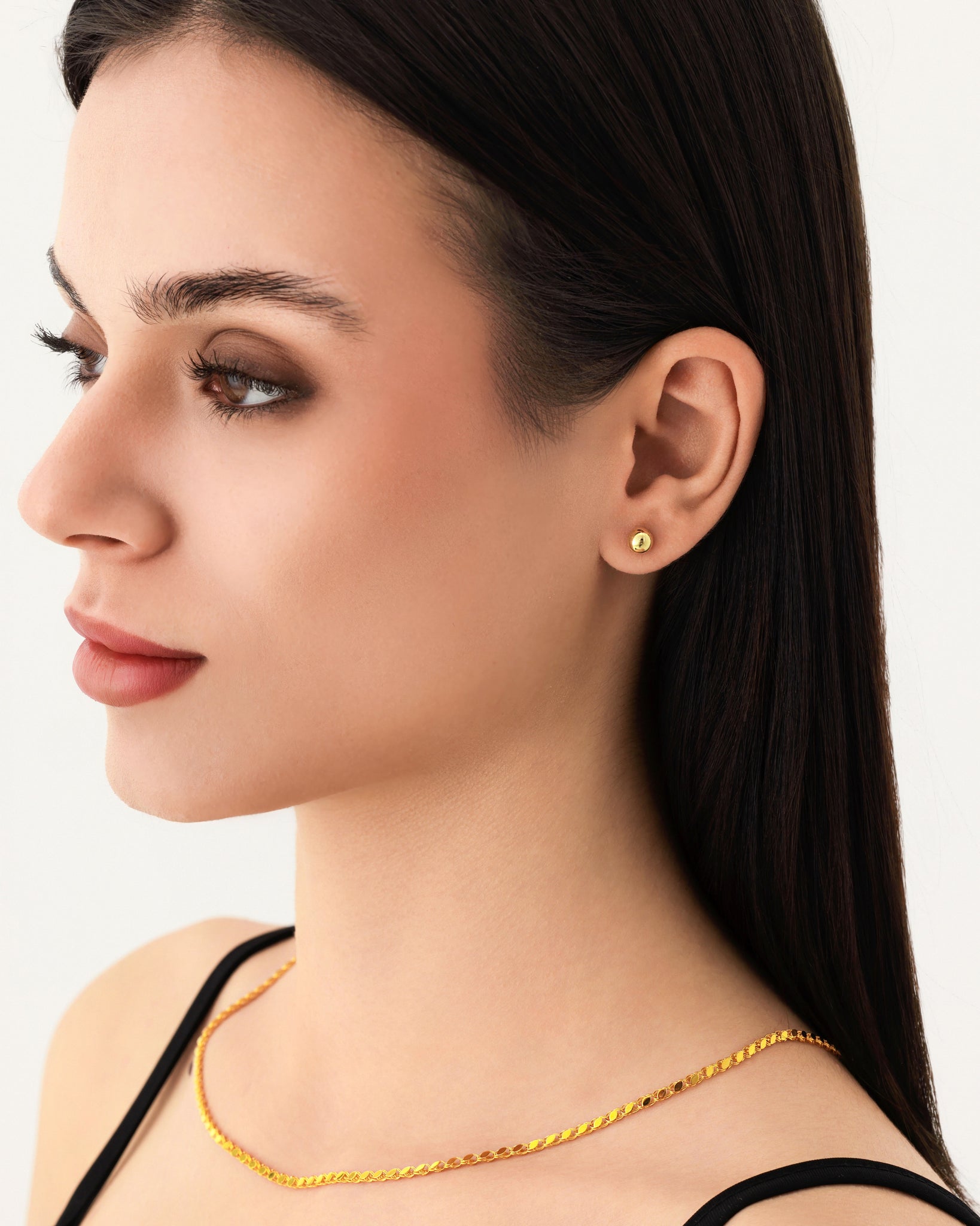İnce altın işçiliğinin zarafetini yansıtan bu küpe, parlak ve yansıyan yüzeyi, zarafetiyle göz kamaştırırken, her türlü günlük kombinle uyum sağlayacak şekilde tasarlanmıştır. Her detayında özen ve ışıltı barındıran ürün, stilinize benzersiz bir dokunuş katacak.